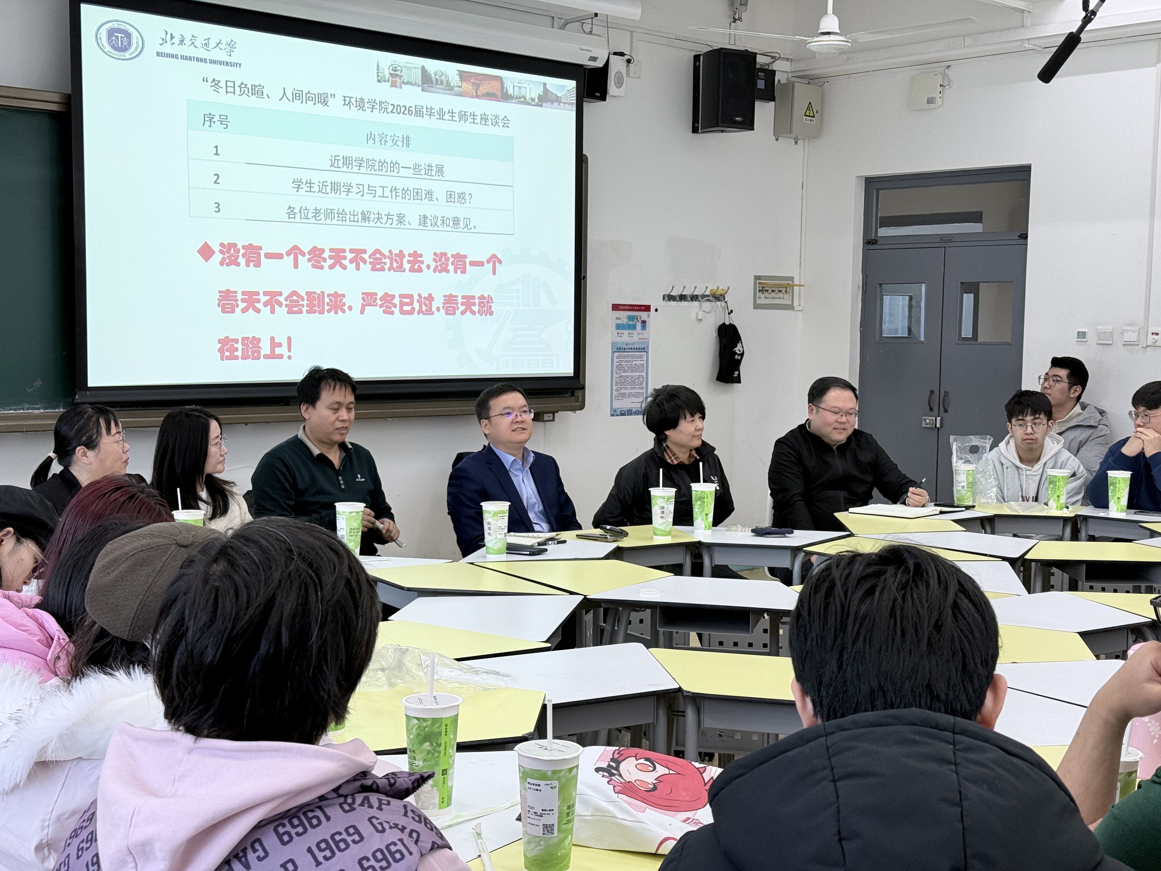 2025年12月30日,成人小说 “冬日负暄、人间向暖”2026届本科毕业生座谈会在思源西楼406教室圆满召开。学院党委书记向宏军、院长彭林、副院长王爱民,院长助理闫雨龙、环境科学与工程系主任陈蕊、学工办主任徐春玲、教学科科长潘茜茜、本科生辅导员李峥与2026届本科毕业生齐聚一堂,围绕学院发展规划、人才培养提质、学生成长成才等核心议题,开展深入交流与探讨。